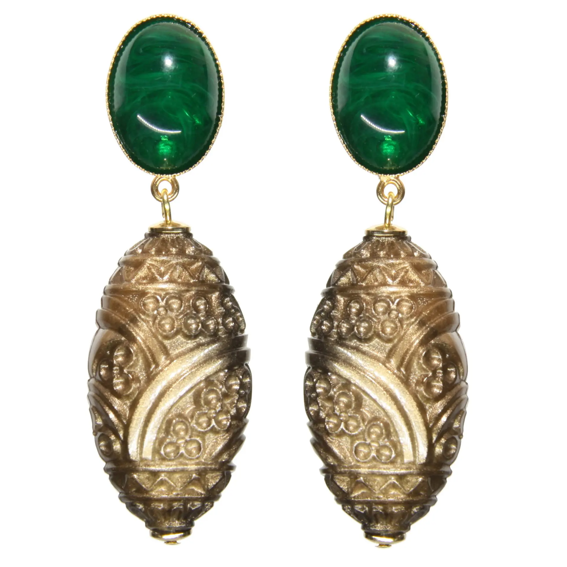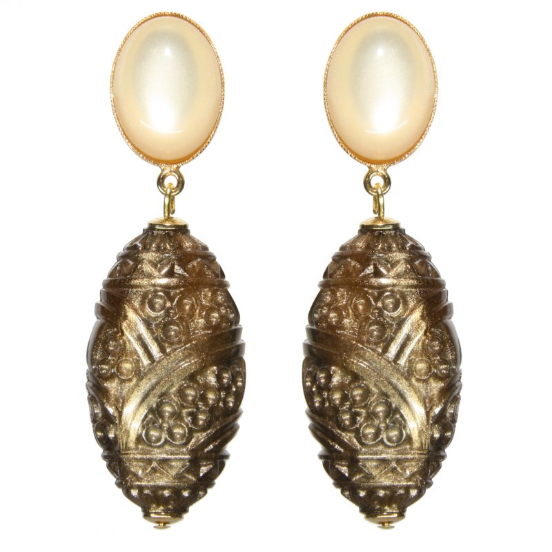 Ohrring goldfarbenes Oberteil mit Acryl Behang in goldfarben