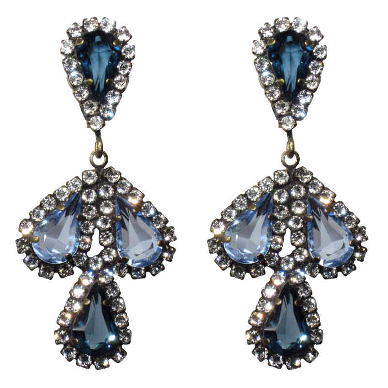 festlicher Ohrring mit Kristallen von Swarovski® in unterschiedlichen Blautönen.
